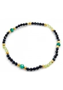 Bransoletka wykonana ze srebra próby 925, pozłacanego 24 karatowym złotem. Kamień: Spinel+ Malachit + Oliwin i Hematyt Rozmiar kamienia: 4/2mm Długość: 17,5 ...