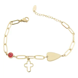 Bransoletka pancerka z sercem i krzyzykiem stal chirurgiczna