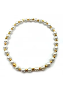 Bransoletka wykonana ze srebra próby 925, pozłacanego 24 karatowym złotem. Kamień: Perła i Hematyt Rozmiar kamienia: 4/2mm Długość: 17,5 cm Zapięcie: gumka B...