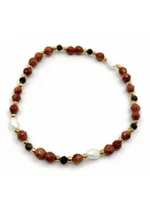 Bransoletka wykonana ze srebra próby 925, pozłacanego 24 karatowym złotem. Kamień: Piasek pustyni + Spinel + Perła i Hematyt Rozmiar kamienia: 4/3/2mm Długoś...