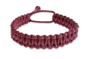 Bransoletka bordowa pleciona Bransoletka bordowa wykonana ze sznurkiem jubilerskiego. Pleciona ręcznie. Posiada regulowany obwód, za pomocą ruchomego węzła. ...