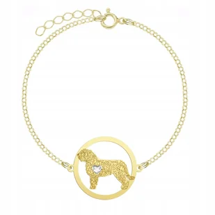 Pozłacana Bransoletka z psem Hiszpański Pies Dowodny ⭐⭐⭐⭐⭐ ➡️CECHY PRODUKTU: kruszec: srebro pr 925, pokryte 24k złotem grubość blachy: 0,70mm średnica blaszki: 21mm ankier: 1,4mm wielkość kryształka/serduszka: