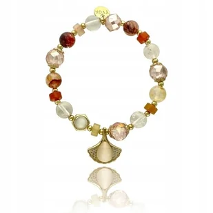 Bransoletka Lovely Stones z kamieniem słonecznym Odkryj magię światła zamkniętą w kamieniach! Ta wyjątkowa bransoletka łączy w sobie czystość kryształu górskiego, delikatność kremowego kwarcu i złocisty połysk kamienia słonecznego – niezwykłej odmiany skalenia, której migoczące inkluzje przypominają drobinki promieni słońca. Centralnym punktem bransoletki jest zawieszka w kształcie liścia miłorzębu, symbolizującego harmonię i długowieczność, w której został zatopiony elegancki, kremowy kwarc. To połączenie natury i subtelnego luksusu, które przyciąga spojrzenia. Bransoletka wykonana z antyalergicznych materiałów na elastycznych silikonowych gumkach – bez zapięcia, wygodna i dopasowująca się do nadgarstka. Pięknie prezentuje się solo lub w zestawie z innymi bransoletkami z naturalnych kamieni z serii Lovely Stones marki Yvon.