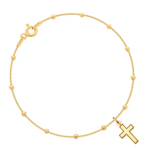 Subtelna bransoletka ze srebra próby 925 pozłacanego 24-karatowym złotem. Bransoletka składa się z łańcuszka i zawieszki w kształcie krzyżyka. Długość branso...