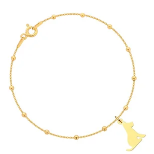 Elegancka, delikatna bransoletka ze srebra próby 925 pozłacanego 24-karatowym złotem.Bransoletka została wykonana z łańcuszka oraz zawieszki w kształcie pieska.Długość bransoletki: uniwersalna 18 cmWielkoś ...