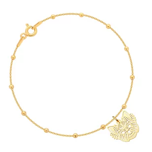Elegancka, delikatna bransoletka ze srebra próby 925 pozłacanego 24-karatowym złotem. Bransoletka została wykonana z łańcuszka oraz zawieszki w kształcie yor...