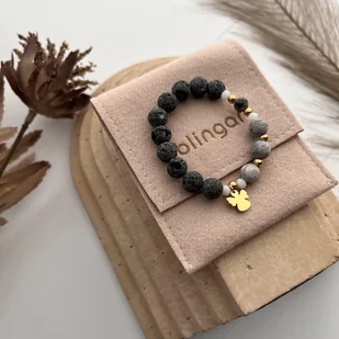 Bransoletka różaniec dla chłopca KAMIENIE NATURALNE aniołek Bransoletka różaniec dla chłopca KAMIENIE NATURALNE AGAT KREMOWY pozłacany aniołek Ten ręcznie wykonany różaniec, który pełni również funkcję bransoletki, to unikatowy dodatek łączący styl z głębokim przesłaniem. Wykonany z naturalnych kamieni szarej lawy wulkanicznej oraz jaspisu szarego, zdobiony detalami z pozłacanej 24-karatowym złotem stali chirurgicznej 316L, wyróżnia się wyjątkowym designem i trwałością. Zawieszka w kształcie złotego aniołka symbolizuje ochronę, troskę i miłość, nadając całości duchowego charakteru. Symbolika i piękno kamieni: Lawa wulkaniczna – kojarzona z siłą i ugruntowaniem, wspiera spokój wewnętrzny i odporność na codzienne wyzwania.