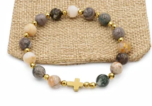 Bransoletka różaniec na rękę agat bambusowy rękodzieło na prezent