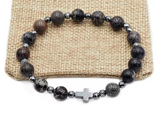 Bransoletka różaniec na rękę jaspis brązowo czarny sakwa