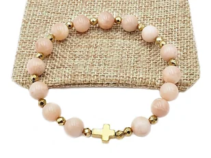 Bransoletka RÓŻANIEC na rękę Jaspis Beżowy Złote Elementy Krzyżyk/GiovanniDivine