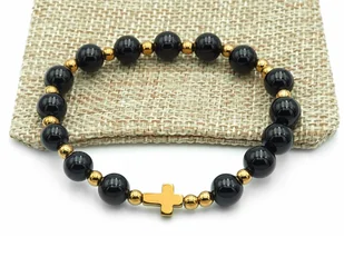 Bransoletka różaniec Agat i hematytem ręcznie robiona, prezent Komunia, Bierzmowanie