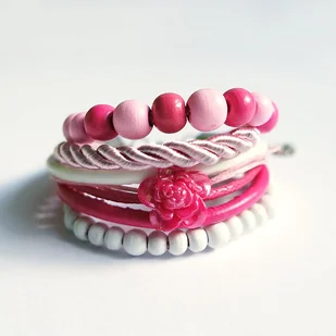 Bransoletka - Różowa róża - rzemienie, drewniane koraliki
