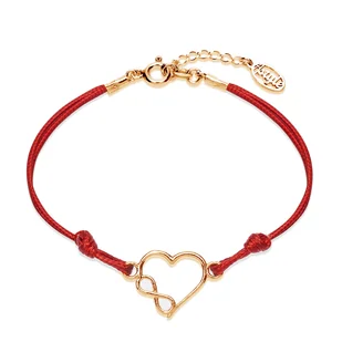 Bransoletka Pozłacana z Nieskończonością Czerwona Cyrkonia Serce SREBRO 925