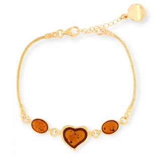 Bransoletka Serce Srebro 925 - Bransoletka bursztynowa pozłacana koniak