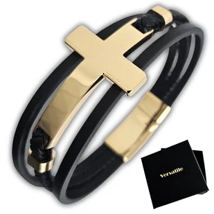 Męska bransoletka wykonana ze skóry naturalnej oraz stali chirurgicznej 316L Versatile® Wszystkie zdjęcia poniżej to rzeczywiste fotografie sprzedawanego produktu, nie są to grafiki komputerowe Dlaczego warto sięgnąć po produkty z naszej oferty? Proponujemy Państwu wyselekcjonowane produkty, starannie dobrane pod kątem najwyższej możliwej jakości Nasza biżuteria wykonana jest z wysoko jakościowej skóry oraz stali chirurgicznej 316l, która będzie cieszyć swoim blaskiem przez długie lata Stal chirurgiczna jest materiałem hipoalergicznym, nie uczula. Jest również odporna na utlenianie i korozję Nasze produkty wyróżniają się ponadczasowym wzornictwem Każda bransoletka dotrze do Państwa w kartonowym, idealnie dopasowanym biżuteryjnym opakowaniu wraz ze spodem wykonanym z gąbki Jest to idealna propozycja na elegancki prezent Eleganckie połączenie wysokiej jakości skóry naturalnej oraz stali chirurgicznej 316L. Bransoletka zachowuje swój blask na długie lata. Wykonana z wysokiej jakości skóry naturalnej, ta bransoleta jest zarówno wytrzymała, jak i stylowa. Duży czarny krzyż stanowi centralny punkt całości, nadając charakteru i osobowości.