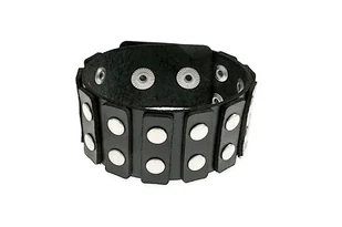 Bransoletka z Nitami wojskowa Bransoletka nabijana nitami. Wykonana ze skóry koloru czarnego. Regulowana ✔ Produkt jest dostępny ✔ Polska marka ✔ Fabryczne opakowanie Informacje Marka: Jubileo Kraj produkcji: Polska Kolor: