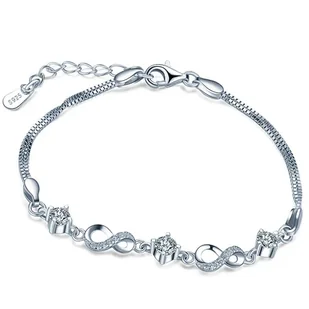 Najważniejsze cechy produktu: Materiał: Miedź powlekana srebrem techniką amélioré Długość: regulowana 18,5 - 22,5 cm Waga: 3,6 g Bransoletka Podwójna Nieskończoność Piękna, podwójna bransoletka wykonana z miedzi posrebrzanej techniką amélioré ozdobiona znakami nieskończoności oraz trzema dużymi diamentowymi cyrkoniami najwyższej jakości. Minimalizm, siła prostoty i perfekcja w nowym wydaniu.