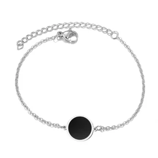 Bransoletka srebrna damska z czarnym oczkiem stal chirurgiczna