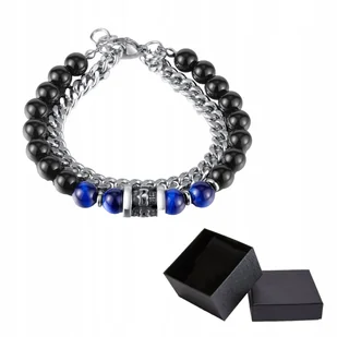 Bransoletka Srebrna Łańcuszek Stal Kamień Czarny Agat Tygrysie Oko Pudełko