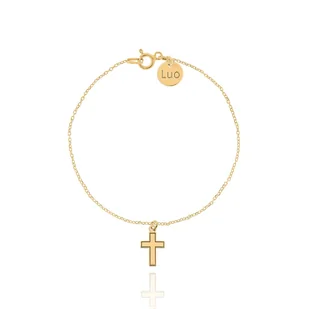 Bransoletka srebrna pozłacana z grawerowanym krzyżem. Całość wykonana ze srebra 925 pokrytego 24 karatowym żółtym złotem. Krzyż: 14,1 x 8,1 mm Długość bransoletki: 18 cm Grubość łańcuszka: 1 mm Zawieszka logo: