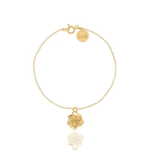 Bransoletka srebrna pozłacana z kwiatem róży. Całość wykonana ze srebra 925 pokrytego 24 karatowym żółtym złotem. Kwiat Róży (Róża): 11,4 x 13,1 mm; grubość:...