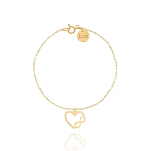 Złota Bransoletka z Nieskończonością SREBRO Serce Kryształy POZŁACANA 585