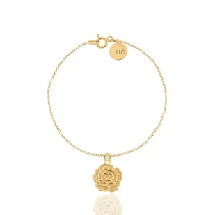 Bransoletka srebrna pozłacana z odlewaną różą. Całość wykonana ze srebra 925 pokrytego 24 karatowym żółtym złotem. Róża: 14,3 x 16,5 mm Długość bransoletki: 18 cm Zawieszka logo: 8 mm Grubość łańcuszka: 1 mm Biż ...