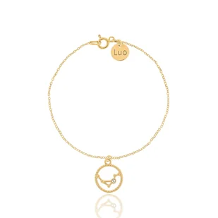 Bransoletka srebrna pozłacana ze znakiem zodiaku Rak. Całość wykonana ze srebra 925 pokrytego 24 karatowym żółtym złotem. Znak zodiaku / Konstelacja z kryształkiem: 13 x 15 mm Długość bransoletki: 18 cm Zawieszka logo:
