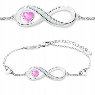 Bransoletka Srebrna Różowe Serce z Nieskończonością Cyrkoniami SREBRO 925
