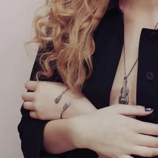 Urocza i oryginalna bransoletka srebrna próby 925 z gatunku otwartych z dwoma skrzypeczkami. Wykończona oksydą i wypolerowana. Długość skrzypiec 2,7 cm. Delikatna, efektowna, nie tylko dla melomanów. Waga: 7,2 gr. Nr katalogowy :