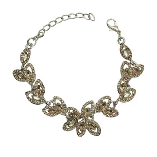 Bransoletka srebrna szampańskie cyrkonie kwiaty ślubne Bransoletka srebrna z cyrkoniami w kolorze szampana to zdecydowanie częsty wybór przyszłych mężatek zw...