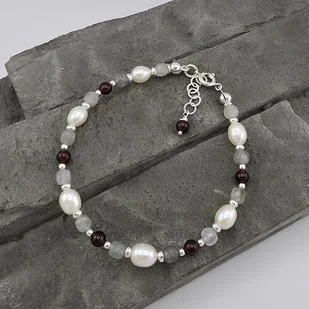 Bransoletka srebrna z perłami, labradorytem, granatem