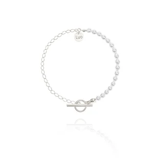 Bransoletka srebrna z perłami Preciosa w kolorze białym i ozdobnym zapięciem toggle. Zapięcie, łańcuszek i logo wykonane ze srebra 925. Perły: 4 mm Długość: 18 cm Zawieszka logo: 8 mm Grubość łańcuszka: