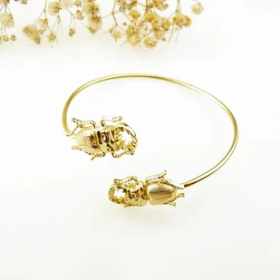 Wyjątkowa artystyczna, ręcznie wykonana bransoletka srebrna z dwoma skarabeuszami. Bransoletka została pozłocona 24 karatowym złotem. Wymiary skarabeusza 2,5...