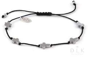 Bransoletka “Srebrne hematytowe krzyże na czarnym sznurku” wykonana jest ze srebrnych hematytów w kształcie krzyży osadzonych na sznurku w czarnym kolorze. Bransoletka “Srebrne hematytowe krzyże na czarnym sznurku” to lekka, bardzo kobieca propozycja z kolekcji wiosenno-letniej. Jej wyjątkowość tkwi w niezobowiązującym charakterze i skromnej, ale eleganckiej formie. Bransoletka posiada zawieszkę DLK wykonaną ze srebra (próba 925). Hematyt (gr. haema (haima), krew; haimatites, krwisty; w nawiązaniu do czerwonej barwy tego minerału po jego sproszkowaniu) – minerał pospolity, tlenek żelaza.