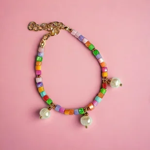 NOWA, LIMITOWANA KOLEKCJA Dostępne zaledwie kilka egzemplarzy! Bransoletka na solidnej lince stalowej (miękkiej) - została wykonana z kolorowej muszli (wałeczki 3x4mm), przekładek ze złotego hematytu oraz ...