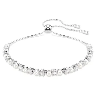Ta finezyjna bransoletka Matrix jest po prostu zachwycająca. Na delikatnym łańcuszku z powłoką z rodu umieszczone są naprzemiennie białe kryształowe perły Swarovskiego oraz cyrkonie Swarovskiego w oprawie szatonowej, które tworzą połyskującą kompozycję subtelnych kolorów i blasku. Uzupełnienie stylizacji o pasujące kolczyki Matrix pozwoli na co dzień spotęgować swój blask. Kolekcja: Matrix Długość (minimalna - maksymalna): 11 - 24 cm Szerokość: