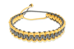 Bransoletka pleciona dwukolorowa Ręcznie zaplatana bransoletka wykonana ze sznurka jubilerskiego w kolorze żółtym i szarym. Posiada łatwą regulację obwodu. U...
