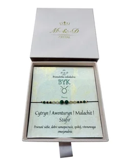 Ręcznie robiona bransoletka szczęścia, z kamieni szlachetnych: cytryn, awenturyn, malachit, szafir. Bransoletka zodiakalna znaku BYK.