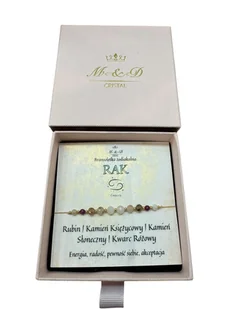 Ręcznie robiona bransoletka szczęścia, z kamieni szlachetnych: Rubin, Kamień księżycowy, Kamień słoneczny, Kwarc Różowy. Bransoletka zodiakalna znaku RAK