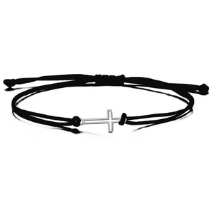 Bransoletka sznurkowa czarny sznurek srebrny krzyżyk na szczęście