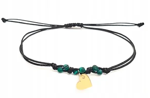 Bransoletka sznurkowa koraliki MALACHIT serce srebro pozłacane 925 GRAWER