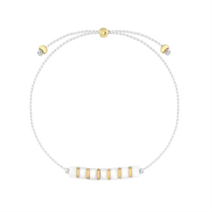 Bransoletka sznurkowa z białą masą perłową i złotymi akcentami