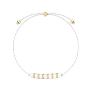 Elegancka bransoletka sznurkowa z białą masą perłową i złotymi akcentami, wykonana na delikatnym białym sznurku, to doskonały wybór dla kobiet, które cenią subtelną i klasyczną biżuterię. Ozdobiona naturalnymi koralikami z masy perłowej, które zachwycają swoim perłowym blaskiem, dodaje stylizacji elegancji i świeżości. Biały sznurek doskonale współgra z subtelnym połyskiem masy perłowej, tworząc harmonijną kompozycję. Złote akcenty w bransoletce podkreślają jej luksusowy charakter, nadając całości wyjątkowego wyrazu. Regulowane zapięcie umożliwia idealne dopasowanie do nadgarstka, co zapewnia