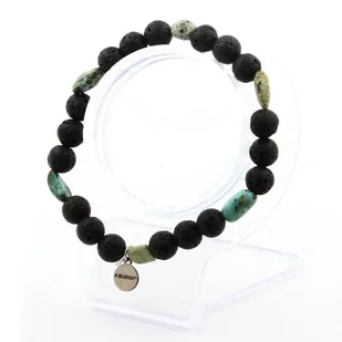 Bransoletka Turkusowa Afrykańska + Perły Lawy 8 mm