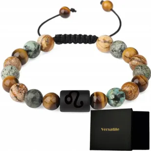 Bransoletka ze znakiem zodiaku (LEW) wykonana z naturalnych kamieni - tygrysie oko oraz agat (matowy) Versatile® Wszystkie zdjęcia poniżej to rzeczywiste fotografie sprzedawanego produktu, nie są to grafiki komputerowe Dlaczego warto sięgnąć po produkty z naszej oferty? Proponujemy Państwu wyselekcjonowane produkty, starannie dobrane pod kątem najwyższej możliwej jakości Nasza biżuteria wykonana jest z wysoko jakości materiałów, dzięki czemu będzie cieszyła oko przez długi czas Nasze produkty wyróżniają się ponadczasowym wzornictwem Każda bransoletka dotrze do Państwa w kartonowym, idealnie dopasowanym biżuteryjnym opakowaniu wraz ze spodem wykonanym z gąbki Jest to idealna propozycja na elegancki prezent Jedyna taka na allegro, regulowana w zakresie od 17 do nawet 24cm! Dzięki temu możesz mieć pewność, że Twój prezent będzie trafiony, bez ryzyka, że obwód bransoletki będzie za duży/za mały! Podstawowe parametry: Długość: 17 - 24cm Szerokość: 7mm Grubość: 7mm Materiał: Naturalne kamienie - kamień tygrysi oraz agat Typ zapięcia: