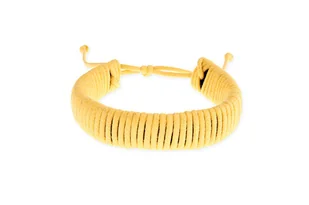 żółty Materiał: sznurek jubilerski woskowany, skóra naturalna Szerokość: 1,5 cm Obwód: uniwersalny regulowany, min. 17 cm Długość regulacji: