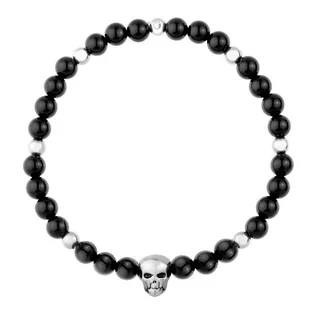 Bransoletka wykonana z czarnego onyksu z czaszką i kulkami ze stali szlachetnej. AMULET OCHRONNY