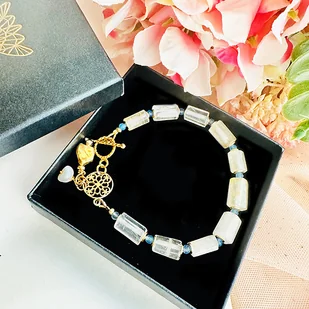 Bransoletka z kamieni , kryształ górski, perła, rozeta