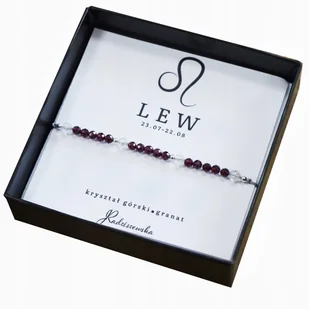 Bransoletka z kamieni LEW Znak Zodiaku Granat Kryształ Górski 925 Prezent BRANSOLETKA ZODIAK LEW BRANSOLETKA Z KAMIENI LEW ⭐⭐⭐⭐⭐ ⭐Srebrna bransoletka Znak Zodiaku - LEW Bransoletka z kamieniami dla znaku zodiaku Lew (23 lipca - 22 sierpnia) powinna odzwierciedlać cechy tego znaku: pewność siebie, energię, kreatywność i charyzmę. Lwy są naturalnymi liderami, pełnymi pasji i żywiołowości. Kamienie używane w bransoletkach dla Lwa powinny wzmacniać te cechy oraz przynosić równowagę i ochronę. Nasza bransoletka jest nie tylko piękna i delikatna, ale przede wszystkim wykonywana ręcznie z kamieni i srebrnych kuleczek próby 925 na regulowanym nylonowym sznureczku, dzięki czemu jest trwała i można ją dopasować do każdego rozmiaru nadgarstka.